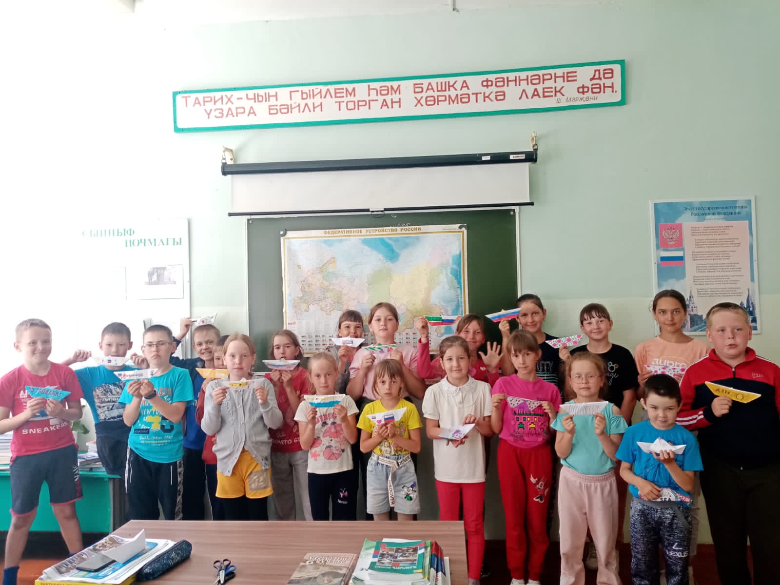 К 350 летию со дня рождения Петра I был проведен урок по истории. Дети ознакомились с биографией Петра I и его достижениями. Были сделаны оригами "Мой кораблик"./Петр I тууына 350 ел тулу уңаеннан тарих буенча дәрес үткәрелде. Балалар Петр I биографиясе һәм аның казанышлары белән таныштылар. Оригами ысулын кулланып "Минем кораблик" моделе ясалды. -