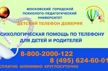 Номер Детского телефона доверия МГППУ в Москве: 8 (495) 624-6001.