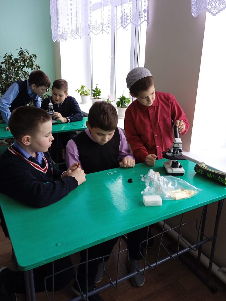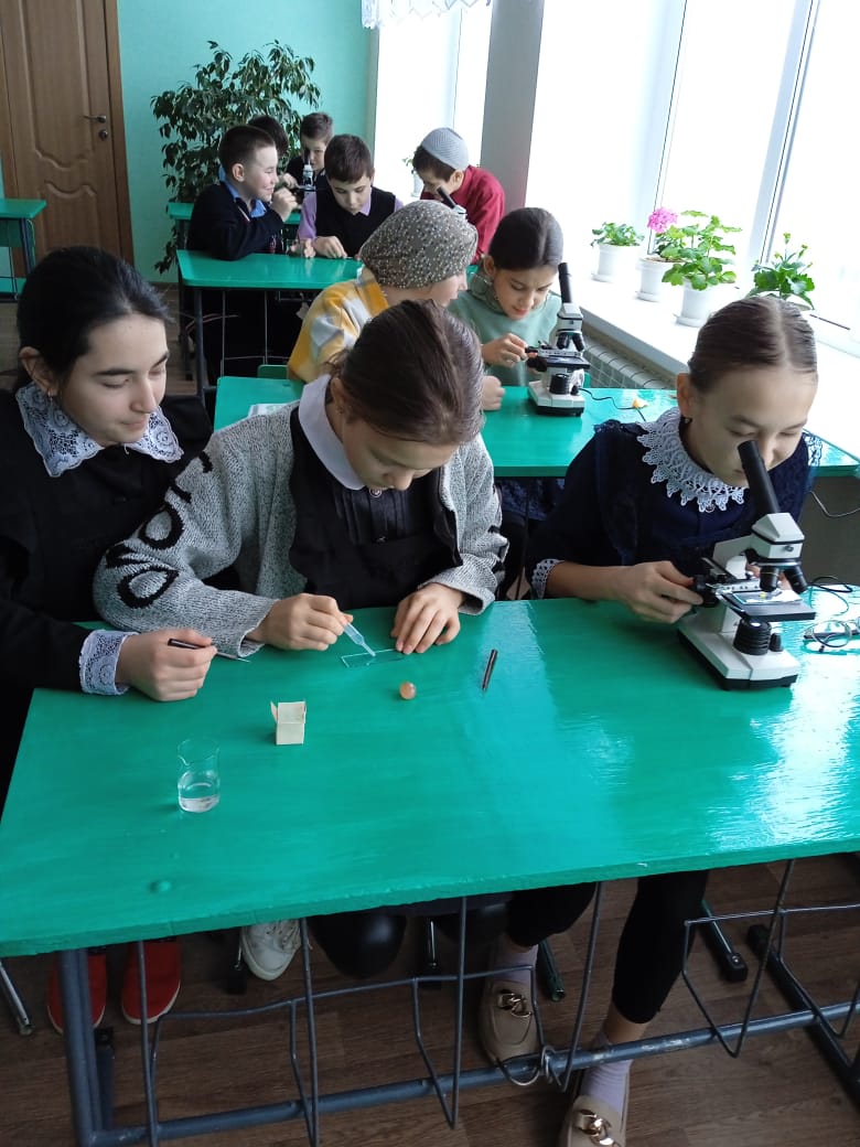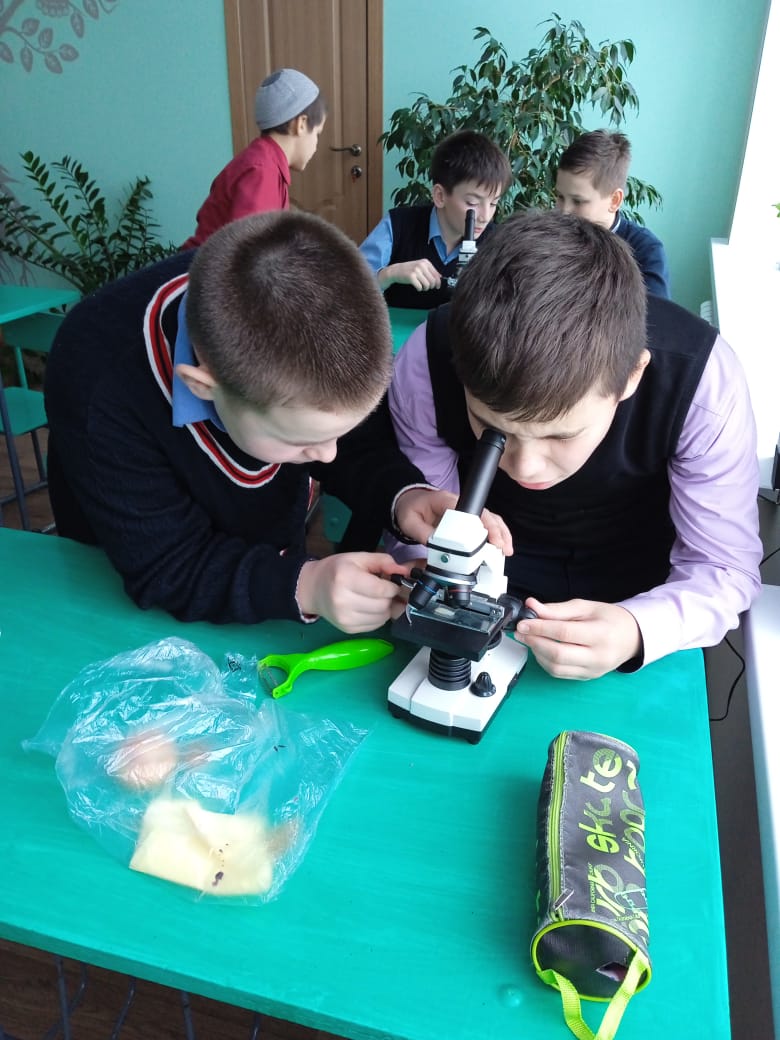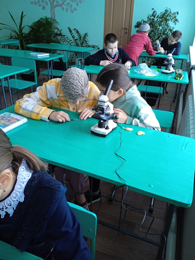 Занятие в кружке" Практическая биология" 6 класса с использованием лаборатории центра образования" Точка роста" , изучение строения различных клеток растительного организма.