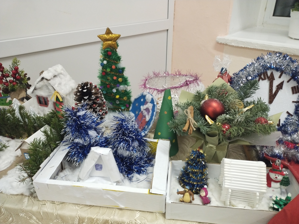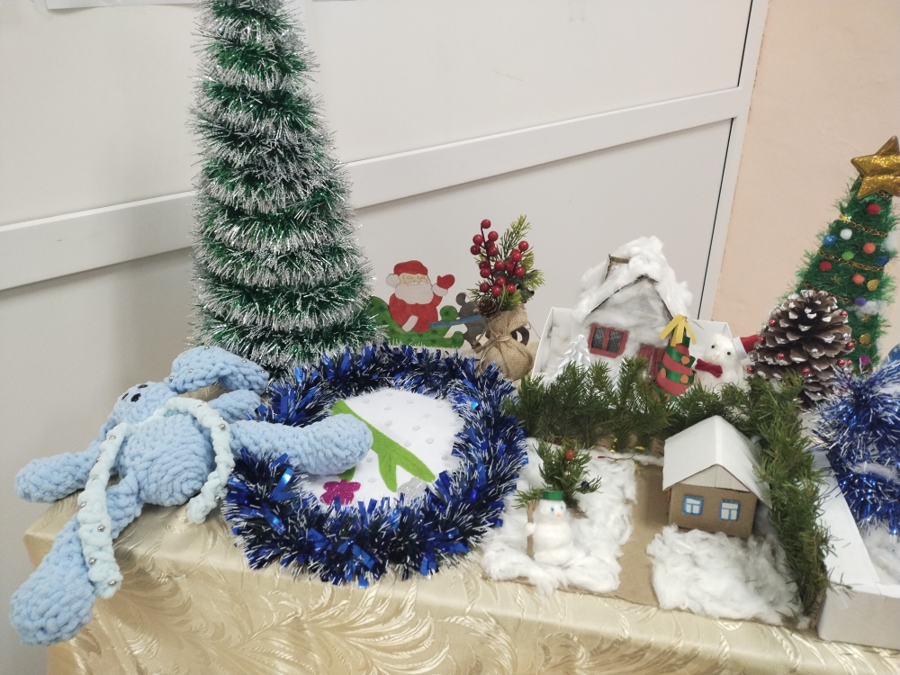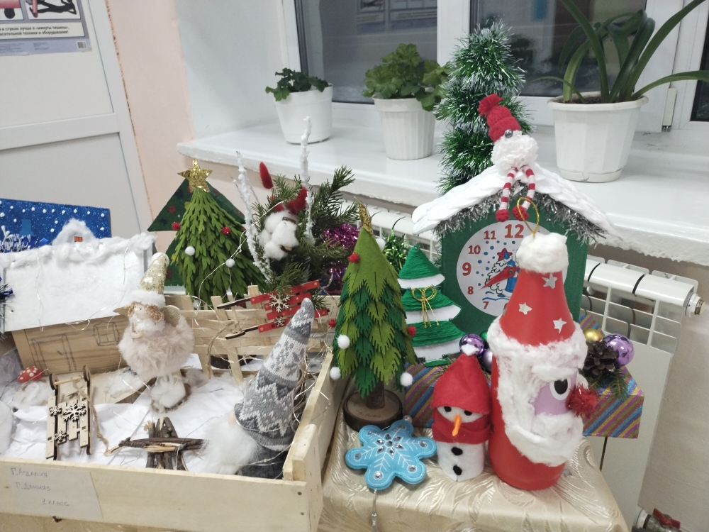 Обучающиеся начальных классов организовали выставку "Поделки деда мороза" из собственных подручных поделок.