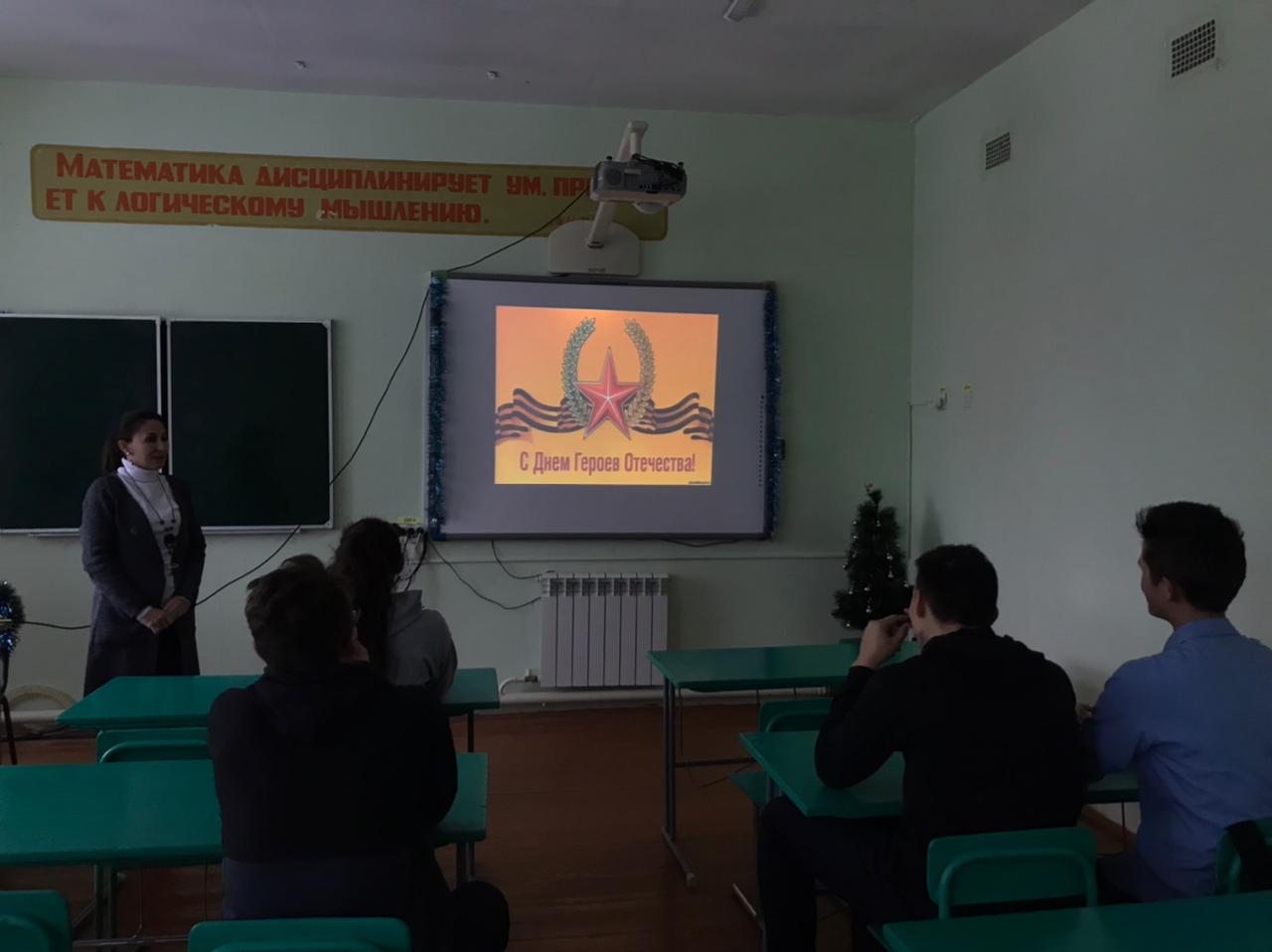 “Ватан Геройлары көне” уңаеннан 9 декабрьдә 11 сыйныфта илебез геройлары һәм аларның батырлыгына багышланган сыйныф сәгате үткәрелде.