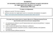 Памятка по оказанию содействия родителю, ребенок которого находится на территории иностранного государства 07.08.2020