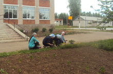 Лагерьга йөрүче кызларыбыз мәктәп каршына чәчәкләр утырттылар.