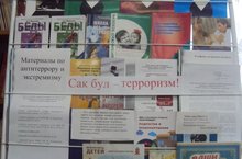 Терроризмны кисәтү һәм булдырмау максатыннан китапханәдә "Сак бул-терроризм!" дигән китап күргәзмәсе оештырылды. Укучыларга яңадан өстәмә мәгълүматлар җиткерелде һәм саклык чаралары турында әйтелде.