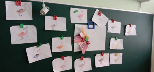 Тәрбияләнүчеләр белгән кошларны исләренә төшереп, яңаларын өйрәнде. Кошларны тану, тавышларын аеру, яшәү даирәләрен белү - дәресебезнең бурычлары иде. Балалар игътибар белән тыңлады, дәрестә бик актив катнашты. Чынбарлыкта булган кошлар гына түгел, әкияти сәмруг кошы да чарабызга бер ямь өстәде. Балалар бу бәхет кошын аерым бер ләззәт белән буяды, аңа өен, гаиләсен, каурыйларын табарга булышты.