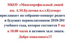 Концерт для будущих первоклассников 04.05.2018