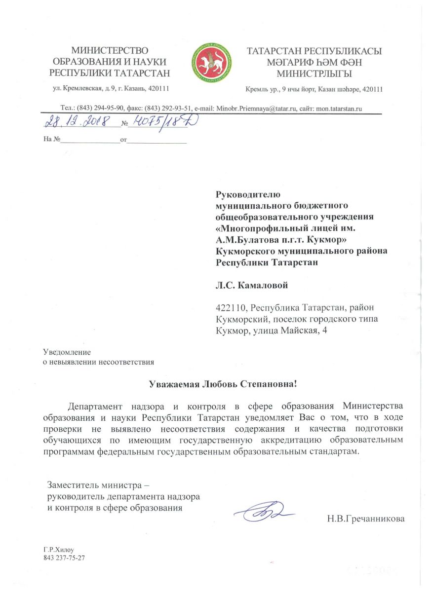 | Короткое название: | МБОУ "Многопрофильный лицей им. А.М. Булатова г. Кукмор" Кукморского муниципального района Республики Татарстан |