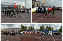 Началась она с выноса знамённой группой копии Знамени Победы.
