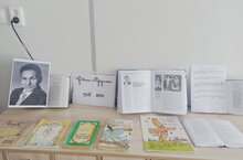әктәп китапханәсендә татар шагыйре Фәнис Яруллин күргәзмәсе уза .
