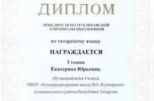 УТКИНА ЕКАТЕРИНА (УЧЕНИЦА 4 КЛАССА) - ПОБЕДИТЕЛЬ РЕСПУБЛИКАНСКОЙ ОЛИМПИАДЫ ШКОЛЬНИКОВ ПО ТАТАРСКОМУ ЯЗЫКУ!!! ПОЗДРАВЛЯЕМ ЕКАТЕРИНУ И ГАТАУЛЛИНУ ЛИЛИЮ ФОАТОВНУ С ПОБЕДОЙ!!! 12.02.2018