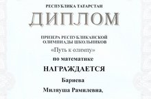 БАРИЕВА МИЛЯУША, УЧЕНИЦА 11 А КЛАССА МБОУ КСШ №3 - ПРИЗЕР РЕСПУБЛИКАНСКОЙ ОЛИМПИАДЫ ШКОЛЬНИКОВ "ПУТЬ К ОЛИМПУ" ПО МАТЕМАТИКЕ! ПОЗДРАВЛЯЕМ МИЛЯУШУ И ГАНИЕВУ ЭЛЬМИРУ РАВИЛЬЕВНУ (УЧИТЕЛЯ МАТЕМАТИКИ) С ПОБЕДОЙ !!! 11.01.2018