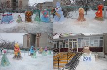 Школа участвует в районном смотре-конкурсе новогоднего оформления снежных городков среди ОУ района. Каждый класс придумывыл макеты фигур, потом дружно собирали снег, и из заготовок "скульпторы" вырезали замечательные снежные фигуры. Ученики, учителя, родители постарались на славу: и теперь сказочные герои встречают всех утром, создавая радостное предновогоднее настроение. Приближение Нового года стало острее ощущаться со строительством Снежного городка.