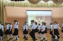 Традиционный смотр строя и песни посвященный дню защитника Отечества среди учащихся.