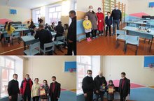 Яңа ел каникуллары алдыннан өлкән сыйныф укучылары Советыннан Кыш Бабай һәм Кар кызы укучылар янында кунакта булдылар, аларны якынлашып килүче Яңа ел белән котладылар һәм бүләкләр тапшырдылар.