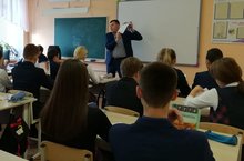 В рамках профориентационной работы с учащимися 8-11 классов была проведена встреча с центром занятости населения г. Кукмора. Ведущий инспектор ЦЗН Мустафина Гульназ Саматовна и психолог учебного центра "РУМ" г. Казань Богданов Александр Сергеевич рассказали учащимся о стратегии выбора их будущей профессии, о классификации типов профессий и провели опрос профессиональных склонностей каждого ученика.