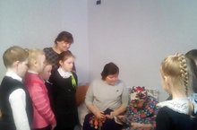 Җиңүнең 75-еллыгы уңаеннан башлангыч сыйныф укучылары китапханәче белән берлектә бердәнбер ветеран Миронова Екатерина Мироновнага бардылар.