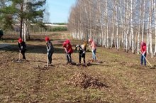 Ученики 7 класса убираются на территории школы и в своем цветнике