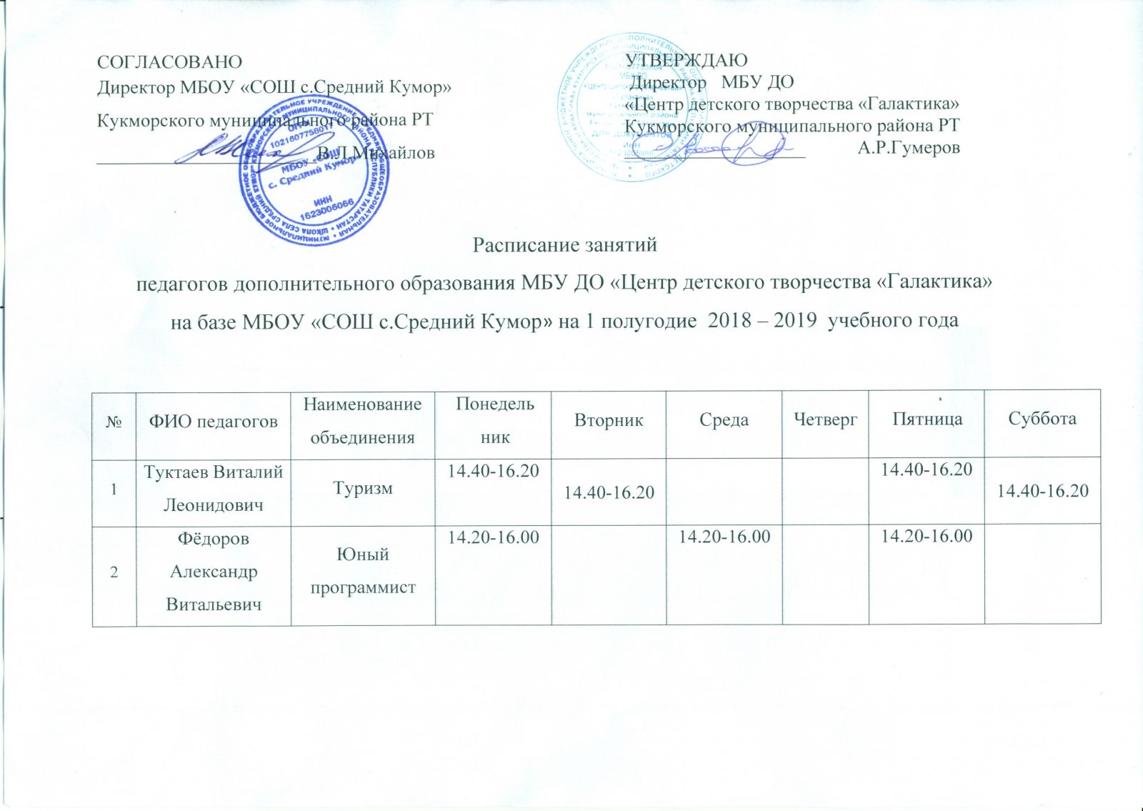 Расписание МБУ ДО "Центр детского творчества "Галактика"