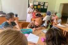 День начался традиционно с веселой зарядки. В лагере прошла викторина- конкурс по противопожарной безопасности, ребята ответили на вопросы, ознакомились с план-схемой эвакуации. Позже просмотрели антикоррупционные ролики. День был насыщенным, интересным, познавательным. Запоминающим моментом дня стало то, что наш в лагерь пришел выпускник нашей школы, который находится на СВО. Дети с радостью встретили его, задавали вопросы, пожелали самые теплые пожелания нашим солдатам -