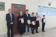Бүген тантаналы линейкада мәктәп директоры Исламов Р.И. район олимпиадары буенча призлы урыннар яулаган укучыларыбызны бүләкләде. Фотода: Ханова Ф.(11 сыйныф)- җәмгыять белеме, Тимергалиев И.(10 сыйныф)-физкультура, Салихова Л.(11 сыйныф),СайфуллинаР(9 сыйныф)-татар теле һәм әдәбияты, Исламов И.(4 сыйныф)-әйләнә-тирә дөнья фәне.