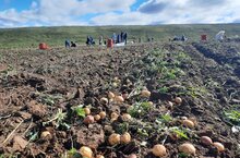 Бүген укучылар, укытучылар һәм мәктәп хезмәткәрләре көче белән бәрәңге уңышы җыеп алынды.
