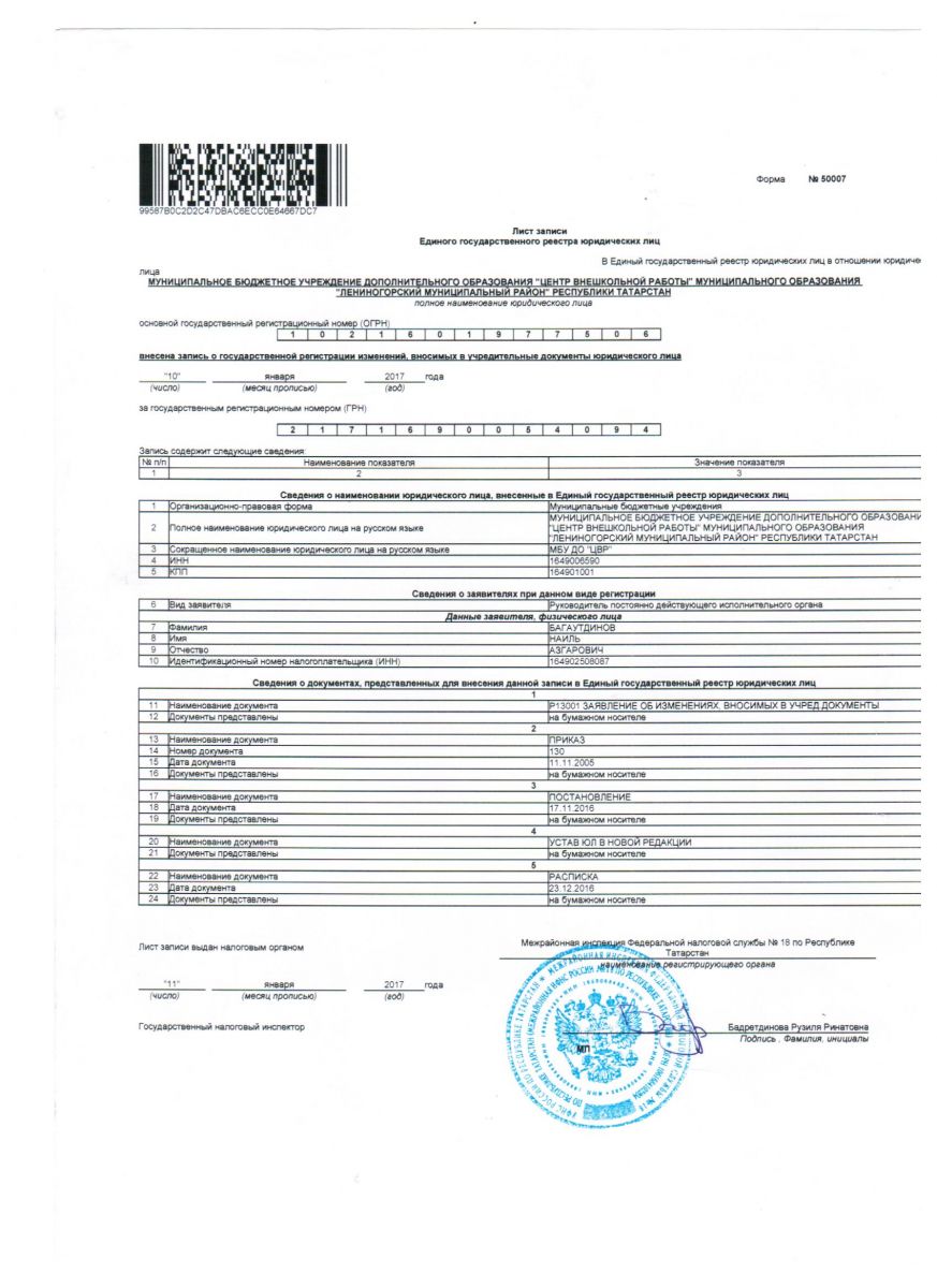 Короткое название: МБУ ДОД "ЦВР" МО "ЛМР" РТ