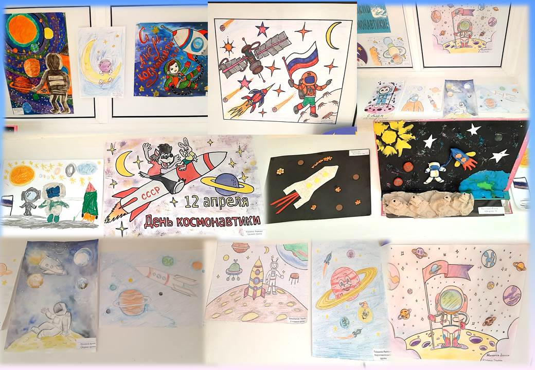 Выставка детских работ ко Дню Космонавтики.