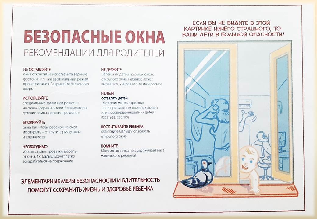 - ребенок не может находиться без присмотра. В особенности в помещениях, где открыто настежь окно или есть хоть малейшая вероятность, что ребенок может его самостоятельно открыть;