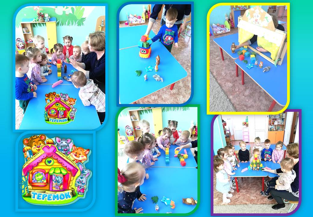 В 1 младшей группе проведено занятие конструирование по сказке «Теремок» с целью формирования у воспитанников умения сооружать элементарные постройки, используя строительный материал. Закрепить с детьми знание сказки «Теремок», активизировать в речи слова - признаки: большой, маленький. Закрепить название строительного материала, цвет, размер. Развивать мелкую моторику рук, внимание, речь, мышление, сенсорное восприятие. Воспитывать желание помочь сказочным героям.
