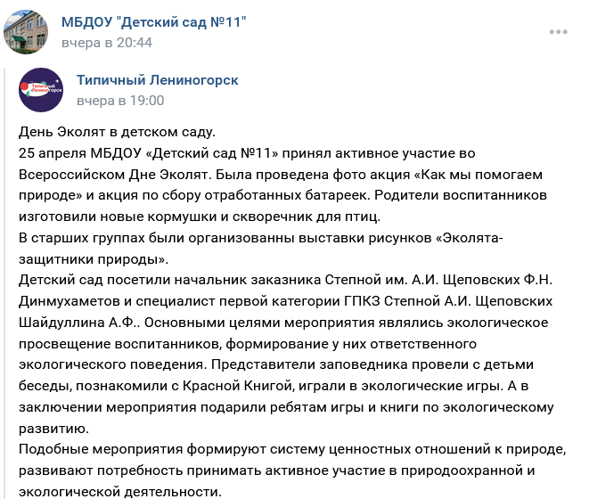 муниципальное бюджетное дошкольное образовательное учреждение «Детский сад №11 г.Лениногорска" муниципального образования "Лениногорский муниципальный район" Республики Татарcтан/Татарстан Республикасы «Лениногорск муниципаль районы» муниципаль берәмлеге «Лениногорск шəһəренең 11 нче санлы балалар бакчасы» муниципаль бюджет мəктəпкəчə белем бирү учреждениесе - новости