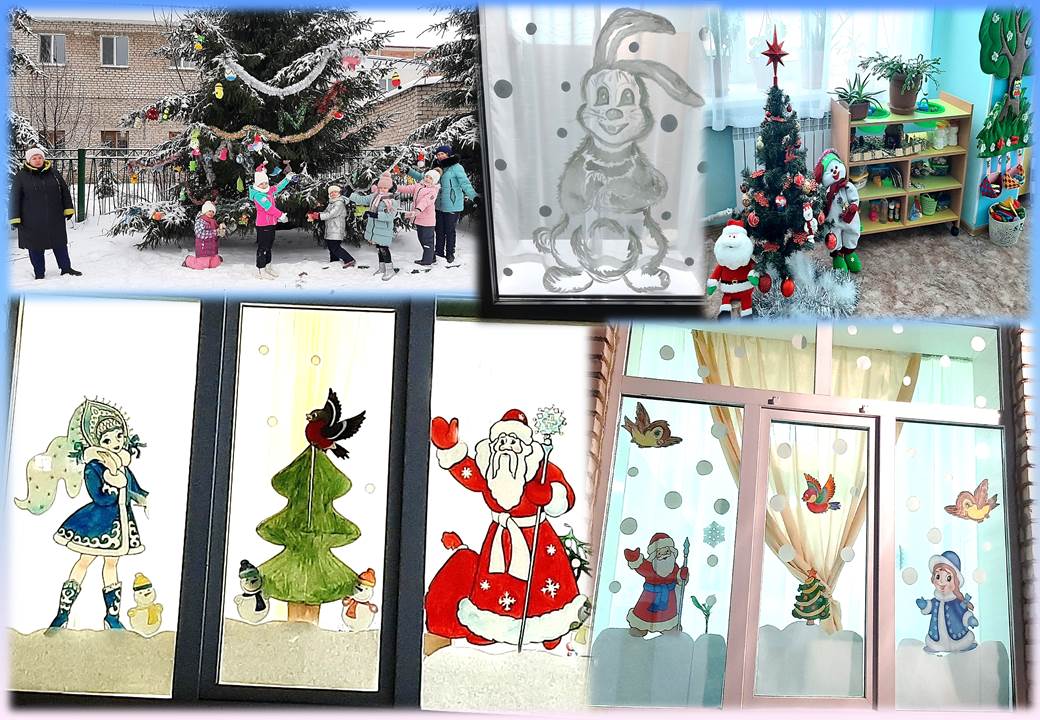 Новый год- это самый долгожданный праздник для детей. Ведь в Новый год происходят самые настоящие чудеса и сбываются самые заветные желания. Волшебство Нового года окружает нас со всех сторон. Мы, взрослые, помним этот праздник как самое яркое событие своего детства. А наши малыши только начинают узнавать Новый год. Поэтому мы постарались создать атмосферу настоящего волшебного праздника. Приходя в детский сад утром, дети еще на улице увидели яркие фигурки сказочных персонажей на окнах. Их встречал Дед Мороз, Снегурочка с олененком, Снеговик с зайчатами. Мы говорим ребятам «по секрету» о том, что Дед Мороз потихоньку наблюдает за ними в окошко ,как они дружно играют, убирают игрушки, кушают. Ведь только послушным детям Дед Мороз дарит подарки но Новый год.