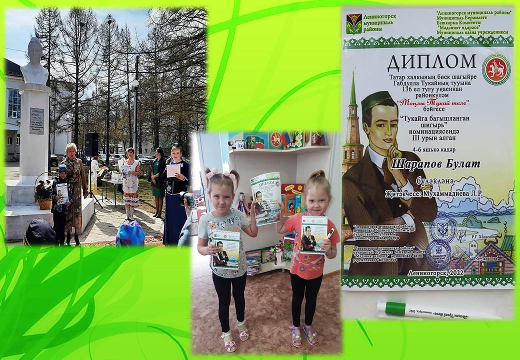 Поздравляем Шарапова Булата и сестренок Якуповых с III местом в конкурсе чтецов, посвящённого 136-летию Г. Тукая!!