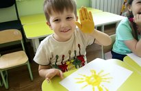 Все дети дошкольного возраста очень сильно любят рисовать необычными и нетрадиционными способами. Так, для детей интересно и полезно рисование ладошками. Сегодня воспитанники средней группы рисовали ладошками "Лето красное". Ребята создавали птиц и животных, различные растения и множество других вещей и явлений простым отпечатком руки. Нашим дошкольникам данная техника рисования очень нравится, т. к. не требует от детей серьезных художественных навыков. Этот увлекательный процесс похож на веселую игру — дети раскрепощаются и раскрывают свои творческие возможности. Кроме того, при рисовании ладошками задействуется большое число нервных окончаний, которые находятся на этих частях тела. Это приводит к активизации коры головного мозга, и, как следствие, развитие психических процессов. Эта техника рисования — еще и хороший рефлекторный массаж: ведь, на ладонях находятся точки, связанные с различными органами.