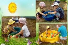 Лето подарило нам много солнца. Поэтому особое удовольствие малышам доставляют игры с водой: вот девочки помыли «овощи» для салата, вот юный рыболов проверяет удочку. А вот мини - бассейн с плавающими мячиками просто манит детишек поиграть и ладошками поплескать водичку. Вода дарит и отдых, и игры, и настроение.