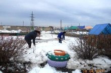 На основании приказа Управления образования от 03.04.2017г. №632 "О проведении двухмесячника по санитарной очистке территории" сотрудники детского сада проводят работы по рыхлению и разбрасыванию оставшегося снега на территории ДОУ.