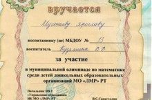 Воспитанник подготовительной к школе группы Ярослав М. принял участие в муниципальной олимпиаде по математике . Он продемонстрировал хорошую подготовку и показал достойные результаты .