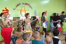 В детском саду весело и задорно прошел День именинника. К детям в гости пришли Клепа и Клякса. Они играли с детьми в веселые игры,танцевали , показывали фокусы.