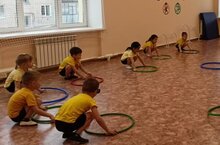 На занятии по физической культуре в средней разновозрастной группе воспитанники обучались ходить по гимнастической скамейке, выполнять упражнение с обручами. Так же на занятиях дети обучаются в игровой форме прыгать, ходить, ползать.