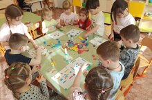 Аппликация - один из самых доступных и понятных видов детского творчества. Она развивает моторику у детей, мышление, эстетический вкус и воображение. Так, в старшей разновозрастной группе раз в две недели проводится это увлекательное занятие. На этот раз ребята старшей группы выполняли аппликацию "Сказочная птица", а средней группы - "Декоративный коврик из геометрических фигур". Все дети были очень увлечены данной работой и с удовольствием коллективно выполняли свои аппликации.