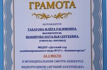 3 место: Краткосрочный проект взаимодействия специалистов с семьями детей, имеющими нарушения речи «Семья – это сердце дома», воспитатели речевой группы Тахауова Флера Расимовна, Ушенина Марина Ильинична, логопед учитель - Шакирова Наталья Сергеевна, воспитатель по обучению татарскому языку Зарипова Нурсина Мингалиевна, музыкальный руководитель Габидуллина Регина Радиковна.