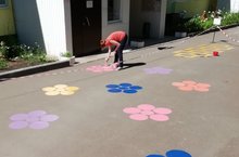 В нашем детском саду для детей разработан целый комплекс игр на асфальте с использованием красочных рисунков и схем. Игры на асфальте являются одной из форм организации активности детей на воздухе, способной расширять их двигательный опыт и обогащать новыми координационно сложными движениями. Благодаря дружной работе педагогов уже заиграли яркими красками новые рисунки: классики, цветы с числами, геометрические фигуры с лабиринтами. Игры на асфальте не требует специального оборудования. Их легко организовать при помощи занимательных рисунков. Игры на асфальте многофункциональны и вариативны. В процессе их проведения совершенствуются разные виды движений, варьируются способы организации детей. Используя один рисунок, можно организовать несколько игр для детей разного возраста и различной физической подготовленности – игр, направленных на развитие двигательных навыков. В играх на асфальте количество участников не ограничено: правила предусматривают одновременное участие в игре всех детей, что способствует повышению двигательной плотности физкультурно-оздоровительного мероприятия. Игры на асфальте создают атмосферу радости и потому позволяют наиболее эффективно в комплексе решать оздоровительные, образовательные и воспитательные задачи.