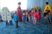 Сегодня состоялось развлечение в 1 младшей группе, целью которого являлось развитие способности детей испытывать удовольствие от встречи с литературными произведениями (Курочкой рябой и Весны), радость эмоционального сотрудничества и сопереживания, проявлять самостоятельность и активность. В развлечении активное участие приняли студенты педагогического училища: Сухалова Евгения и Дарья Михайлова. Особую радость дети испытали от сюрпризного момента, где Курочка высадила золотое яйцо с сюрпризом.