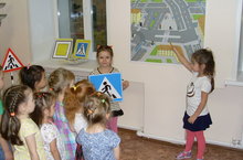 Воспитанники средне группы очень любят приходить в кабинет по изучению правил дорожного движения. Вот и сегодня они пришли сюда, чтобы еще раз повторить дорожные знаки.