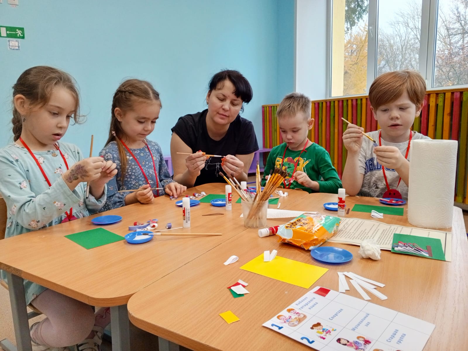 Сегодня в детском саду прошло праздничное мероприятие, посвященное российскому государственному празднику "Дню народного единства". Педагоги организовали его в форме Клубного часа, посвящённого таким добродетелям как единство, доброта, толерантность, дружба. В течении часа воспитанники подготовительной группы свободно перемещались по детскому саду, выбирая себе тематический клуб по интересам, и за час, каждый из них успел: смастерить куклу Куватку для "Хоровода дружбы"; повторить символы Российской Федерации и в нетрадиционной техники аппликации собрать её флаг; нарисовать портрет, символизирующий единство российского народа и приготовить вкусное печенье на праздничный стол.