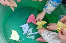 Педагоги вместе с ребятами цветной листок бумаги превратили в бумажные кораблики, познакомили воспитанников с историей возникновения кораблика. Целью мероприятия стало знакомство с бумажной пластикой – оригами и создание положительного эмоционального настроя о летнем оздоровительном периоде. Наши чудесные кораблики к плаванию готовы! Они отправятся к далеким островам «Счастливое детство». Приготовиться к отплытию!
