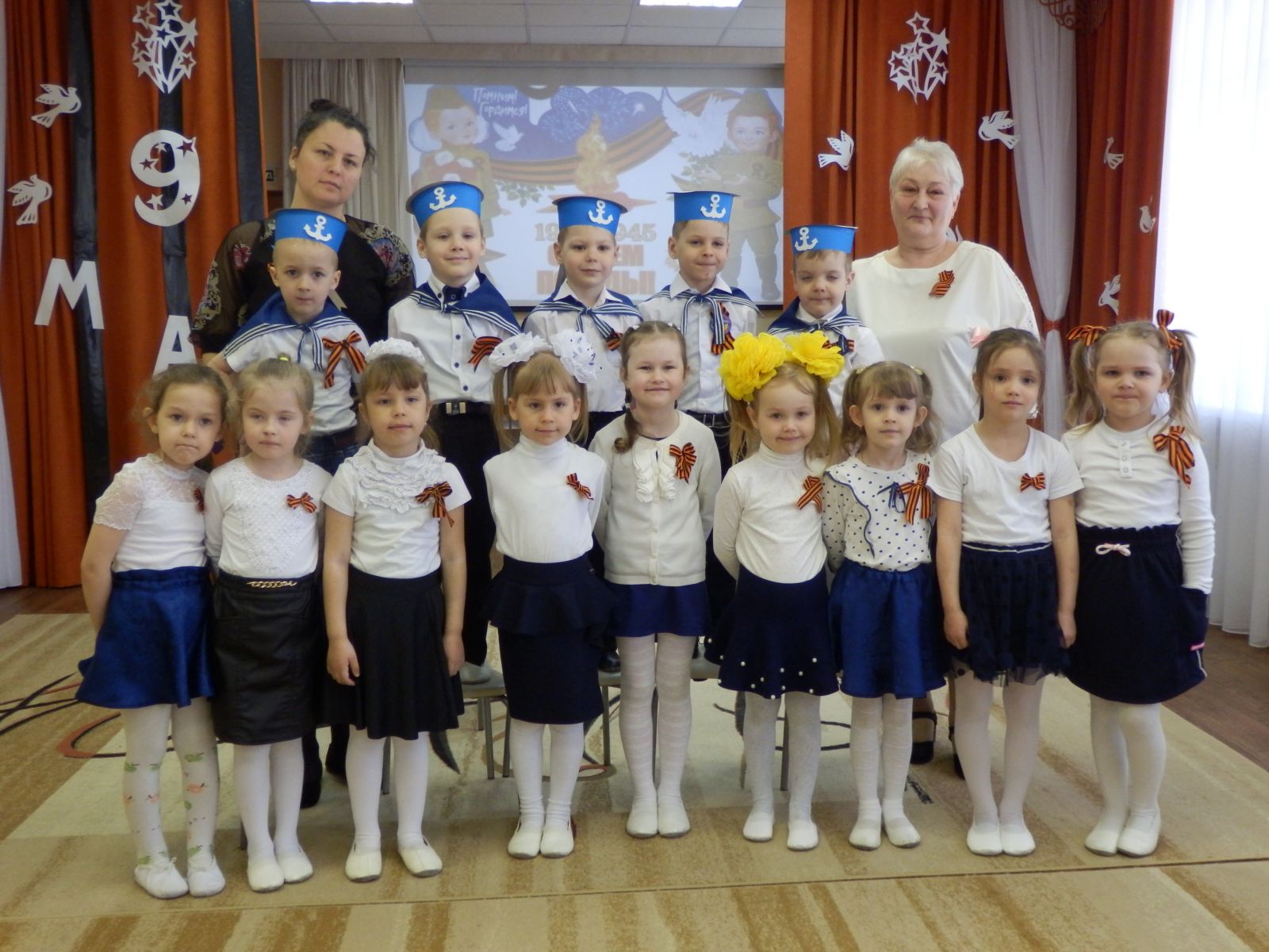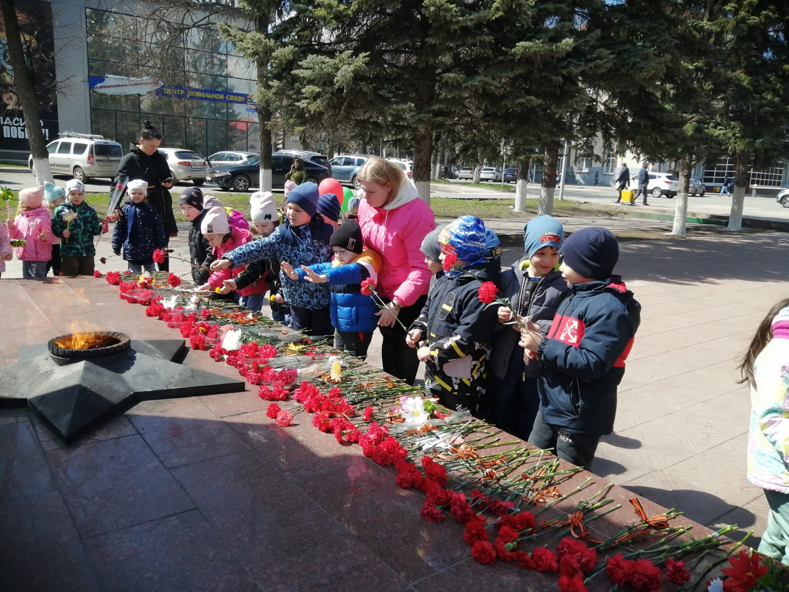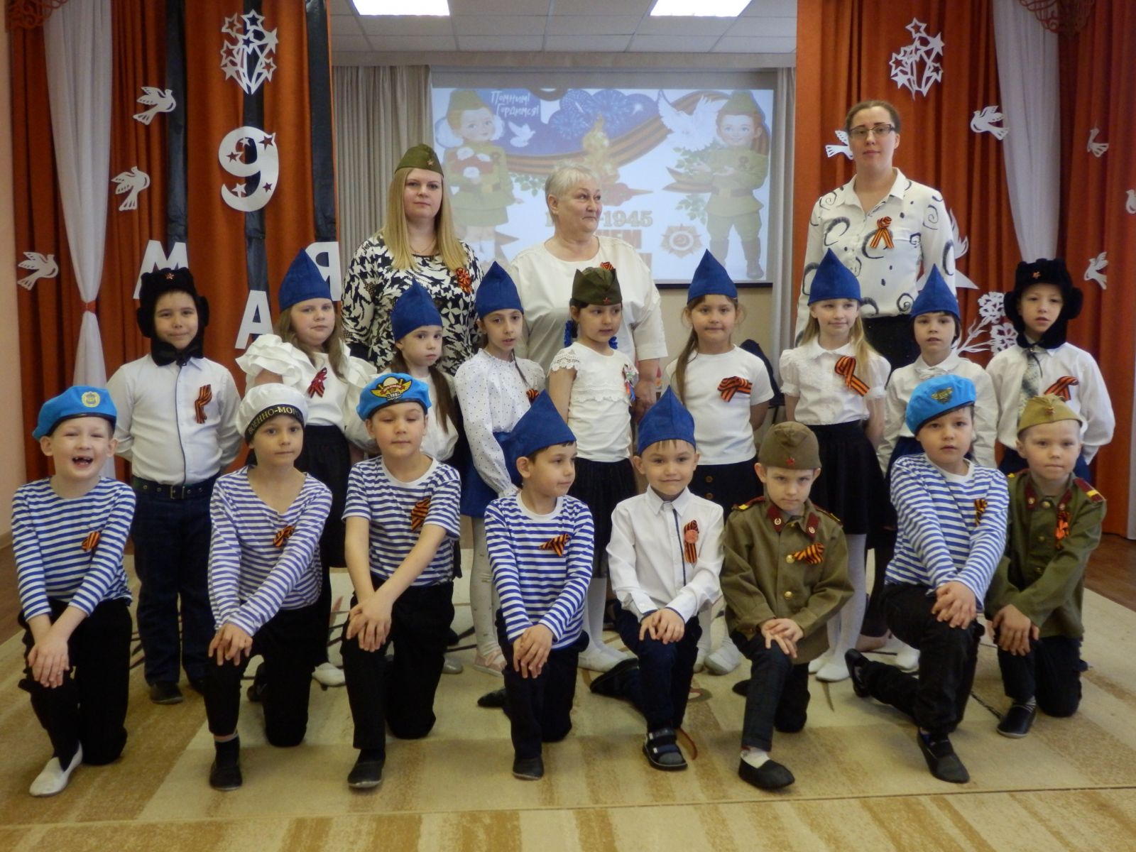 В нашем детском саду с 4 по 6 мая состоялись мероприятие, посвященное празднованию Дня Победы. В эти дни в детском саду проводились уроки мужества, детям рассказывали о силе духа, любви к Родине и Великом подвиге народа. Воспитанники узнали истории детей войны, повзрослевших раньше времени, подвигах людей, прошедших войну в тылу и на фронте, о тех, кто отдал свою жизнь за мир и счастливую жизнь потомков. Итоговым мероприятием стал утренник, посвящённой 77-ой годовщине Великой Победы и возложение старшими дошкольниками цветов к мемориалу «Вечный огонь».