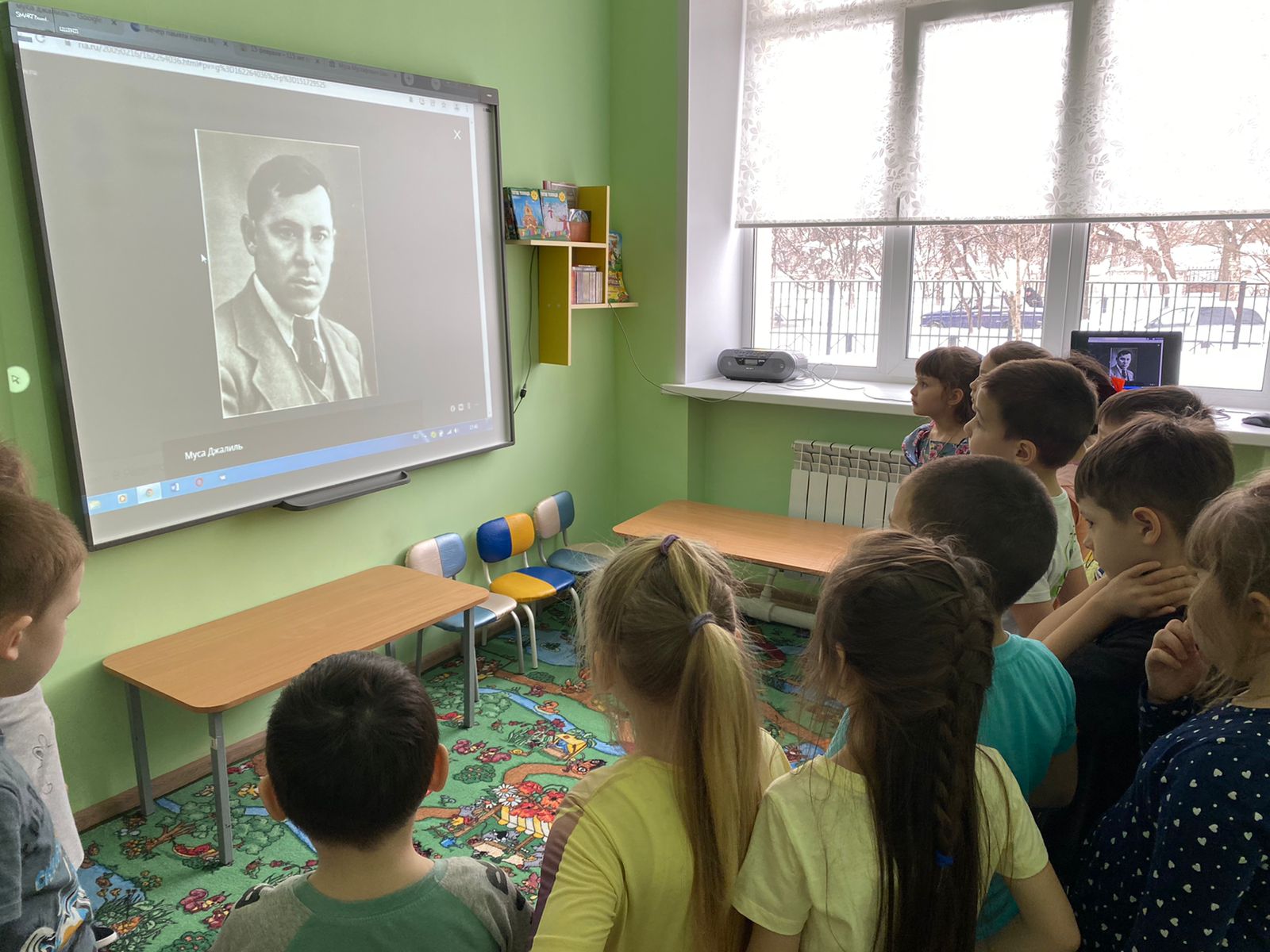 Бүген танылган татар шагыйре Муса Җәлилнең тууына 116 ел тула. "Үлгәндә, үлмәсәң-батырлык гасырларда калачак" - шундый исем астында мәктәпкә әзерлек төркемендә хәтер сәгате узды. Балалар бөек шагыйрьнең төп тормыш этапларын искә төшерделәр, аның шигырьләрен укыдылар, Бөек Ватан сугышы елларында әсир ителгән ватандашлар арасында фашистларга каршы пропаганда алып барган татар яшьтәшләренең батырлыгы турында тыңладылар.