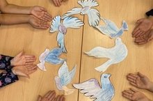 Конечно, мы не могли не отметить этот день в своей работе с детьми и родителями. Во всех группах были проведены занятия, беседы, посвящённые Международному дню Мира. Дети изготовили голубей и узнали, почему именно Голубь является для всех символом мира на Земле. А для родителей ребята приготовили информационные красочные листовки, посвящённые сохранению Мира на Земле. Фото 1, Фото2, Фото3, Фото4, Фото5.