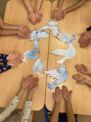 Халыкара тынычлык көне мөһим бәйрәмнәрнең берсе булып санала. БМО Генераль Ассамблеясе бу көнне гамәлгә куеп, аны дәүләт эчендә һәм халыклар арасында тынычлык идеалларын билгеләп үтү һәм ныгытуга багышлады. Әлбәттә, без бу көнне балалар һәм ата-аналар белән искә алмый кала алмадык. Барлык балалар төркемендә халык ара Дөнья көненә багышланган дәресләр, әңгәмәләр үткәрелде. Балалар күгәрченнәр ясадылар һәм ни өчен нәкъ менә күгәрченнең җирдә тынычлык символы булуын аңладылар. Ә ата-аналар өчен балалар җирдә тынычлыкны саклауга багышланган мәгълүмати белдерүләр әзерләделәр.