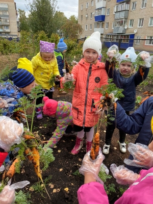 Наступила волшебница-осень, позолотила листья деревьев, одарила людей щедрым урожаем фруктов и овощей. Ребята нашего детского сада очень хорошо знают, что осень - прекрасная пора для сбора урожая. Ведь они сами вместе с воспитателями все лето ухаживали за растениями в огороде: поливали, пололи, рыхлили. И огород их порадовал неплохим урожаем: свекла, лук, укроп, салат, перец, морковка, тыквы. Огород в детском саду — это еще и возможность видеть результаты своей работы. Совместный труд на огороде дает возможность научиться ответственности, способствует формированию трудовых навыков и объединению детского коллектива. И, конечно, огород — это труд на свежем воздухе, который способствует сохранению и укреплению здоровья детей, гармоничному развитию. Вот и приближается к концу сбор урожая, который вызывает особый восторг и удовольствие у наших малышей. А какая вкусная сладкая морковка выращенная и собранная своими руками! Фото1, Фото2, Фото3, Фото4, Фото5, Фото6, Фото7, Фото8.